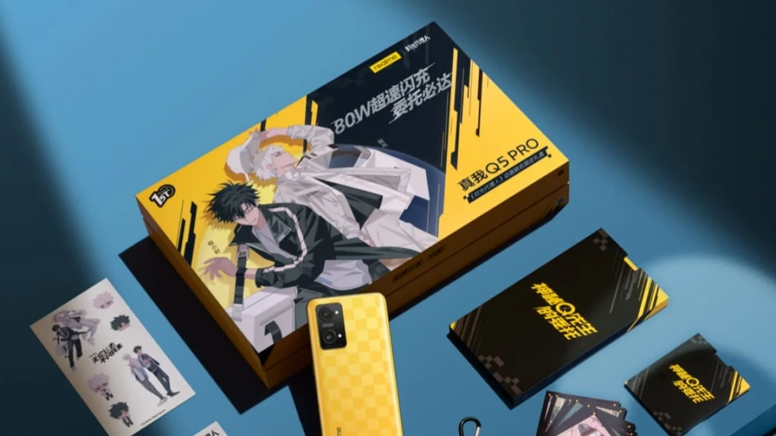 Gift Box Edition поставляется в специально разработанной коробке с несколькими аксессуарами, включая чехол для телефона с персонажами аниме Time Agent. У телефона такой же дизайн задней панели, как и у обычной модели, с квадратным узором желтого цвета.