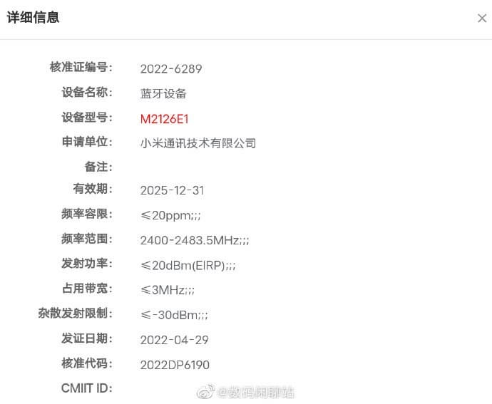 Инсайдер, известный под ником Digital Chat Station, опубликовал данные из базы китайского регулятора. Они указывают, что в стране сертифицирован Mi Band 7, а также новые умные часы Xiaomi и новая модель полностью беспроводных наушников.