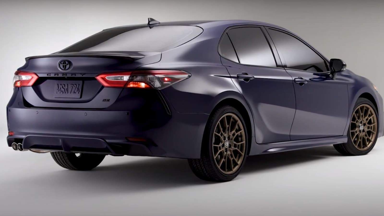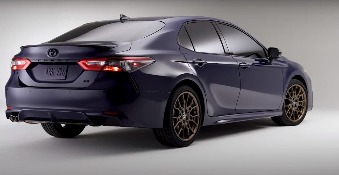 Toyota Camry 2023 Nightshade Special Edition будет доступна с передним и полным приводом, а также в комплектации с гибридной силовой установкой. Внешне от обычной модели специальная версия седана бизнес-класса отличается чёрными зеркалами, решёткой радиатора и задним спойлером. Кроме того, машина получила затемнённые передние фары и задние фонари, а также 19-дюймовые диски с матовой бронзовой отделкой.
