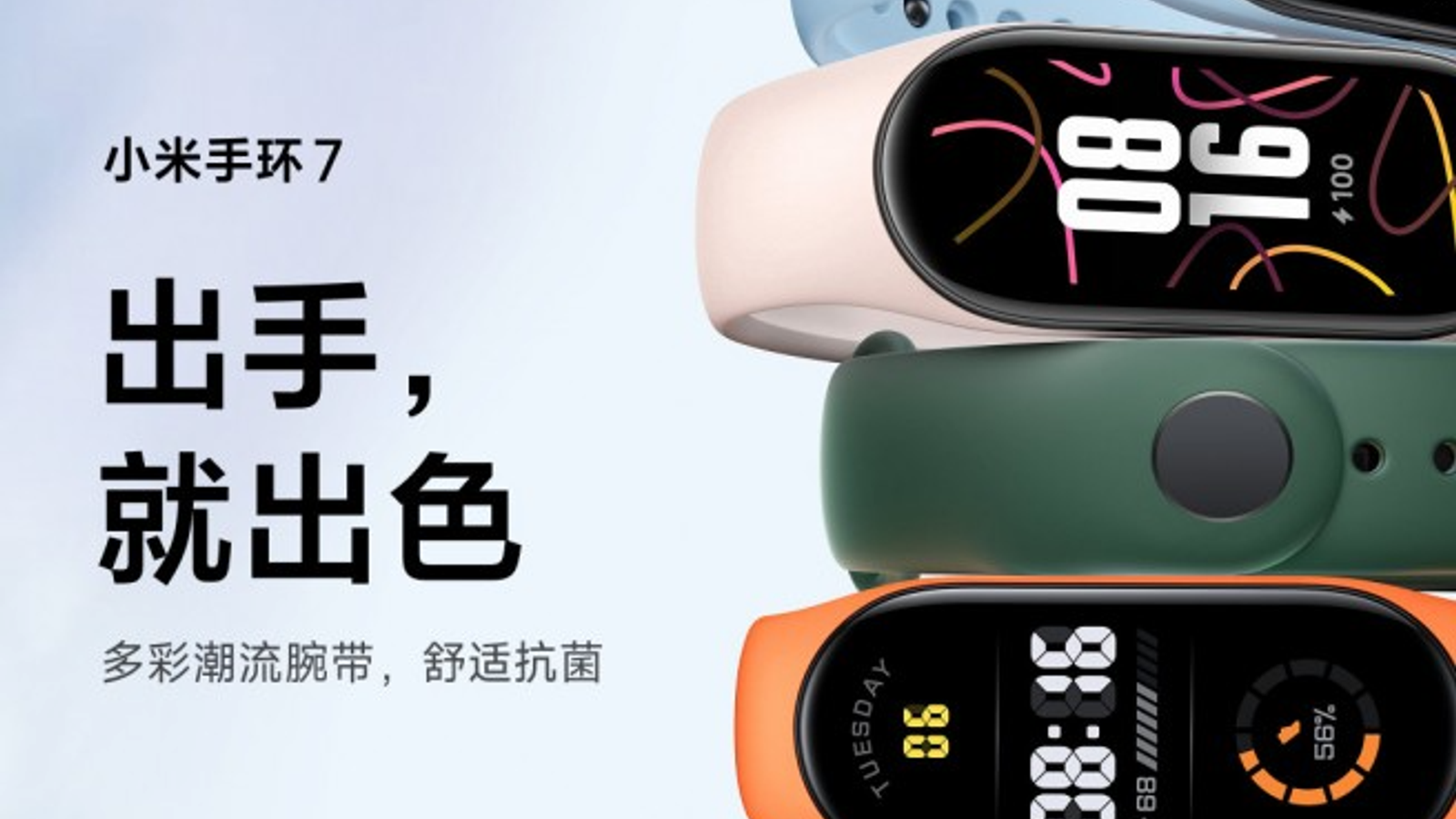 Появилось новое официальное изображение Xiaomi Mi Band 7, которое подтверждает все доступные на момент выхода устройства цвета. Браслеты будут доступны в голубом, розовом, зелёном, оранжевом, белом и чёрном цветах.