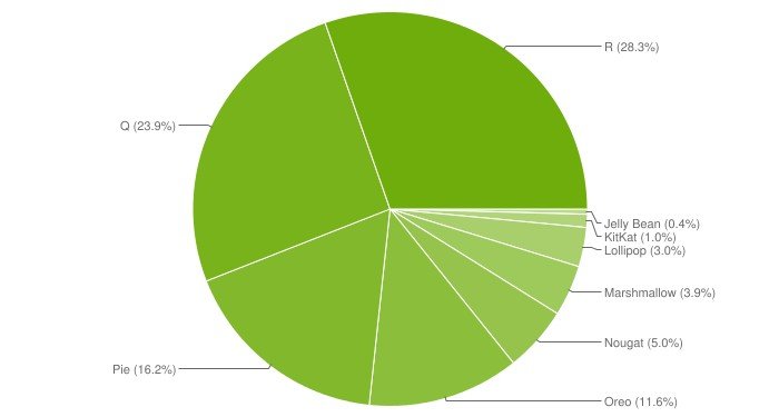Из-за особенностей данных, в статистике отсутствует Android 12. Долю Android 11 также нельзя определить, так как указанные 28,3% занимает Android 11 и более новые, то есть Android 12 и 12L. В любом случае, именно эти системы совместно занимают наибольшую долю. Android 10 занимает 23,9%. Вполне возможно, что именно Android 10 пока остаётся самой распространённой версией, так как та же Samsung активно обновляет свои аппараты до Android 12, и доля Android 11 может быть меньше 23,9%.