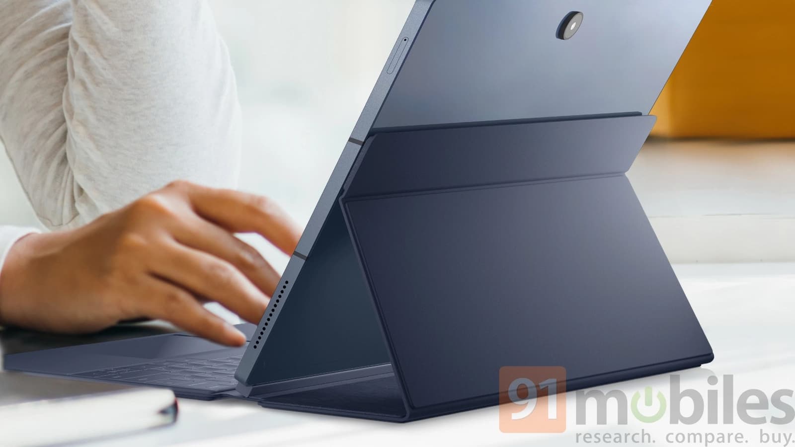 Как бы там ни было, известно, что новинка получит 13-дюймовый экран и будет работать под управлением Windows. Также можно видеть относительно толстый для обычного планшета, но нормальный для планшета с Windows металлический корпус, выступающую одинарную камеру и слот, видимо, для карты SIM. Корпус получил немного скошенные грани, что вместе с модулем камеры делает дизайн планшета весьма нетипичным.