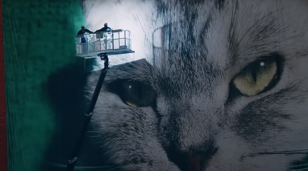 Один из кадров разрешением 200 Мп частями был напечатан на промышленном принтере. 12 отдельных частей были соединены в большое полотно размером 28 х 22 метра, которое было закреплено на фасаде здания.