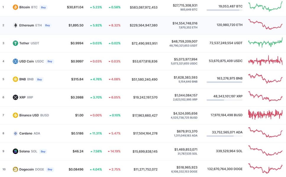 Ethereum за сегодня прибавила даже чуть больше — у неё плюс почти 6%. Но наибольшая прибавка в топ-10 главных криптовалют мира у Solana и Cardano — 7,5 и 11 процентов соответственно. За пределами топ-10 тоже есть рост. Например, мемная Shiba Inu, занимающая 16 место, прибавила за сегодняшний день 10%.