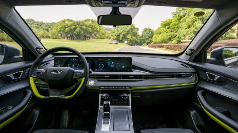 В салоне Chery Tiggo 7 Plus Limited Edition используются такие же контрастные цвета. Яркие вставки и прострочка есть на рулевом колесе, центральной панели, подлокотниках и дверных ручках. Стоит отметить, что китайский автомобиль получил сдвоенный большой экран мультимедийной системы и панели приборов, а также другой блок климат-контроля и шторку для подстаканников.