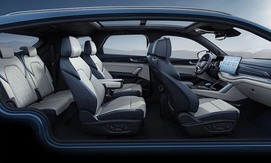 Внутри BYD Tang DM-p — шесть раздельных кресел с отделкой кожей Nappa, вентиляцией и обогревом (на выбор будет предложен и семиместный вариант), большой дисплей на передней панели и ещё экран поменьше в виртуальной комбинации приборов, множество различных ассистентов вождения, большой панорамный люк.