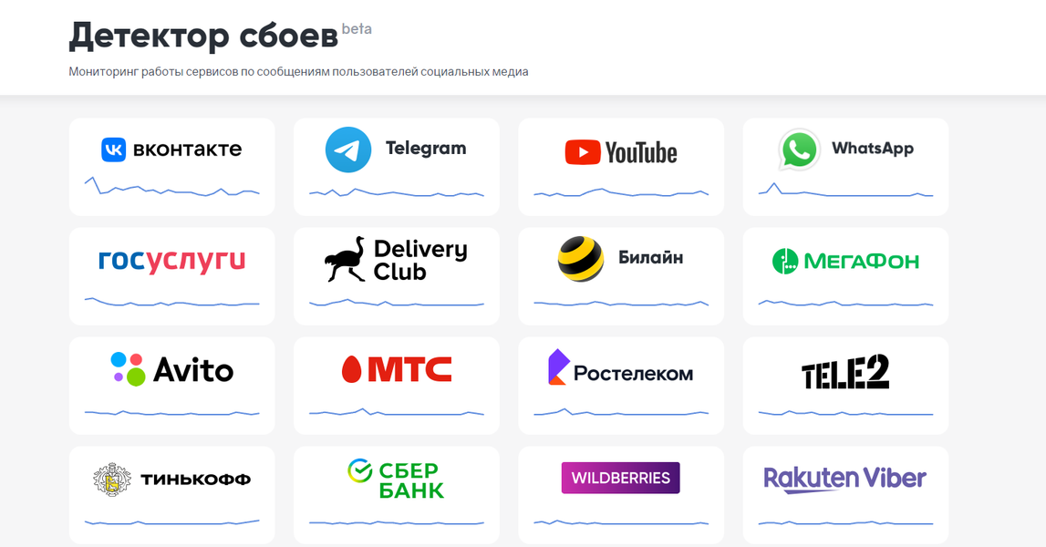 Специалисты Brand Analytics запустили публичную бета-версию «Детектора сбоев», сервиса, который отслеживает сбои и ошибки в работе популярных российских и зарубежных мессенджеров, социальных сетей и видеохостингов. В списке есть «ВКонтакте», «Одноклассники», Rutube, «Дзен», YouTube, TikTok, Twitter, Telegram, Viber и другие. Всего на данный момент насчитывается 100 сервисов.
