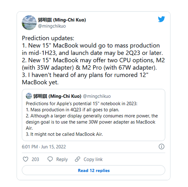Куо также упоминает, что не слышал о каких-либо планах по массовому производству 12-дюймового MacBook, о чём ранее говорил Марк Гурман из Bloomberg.
