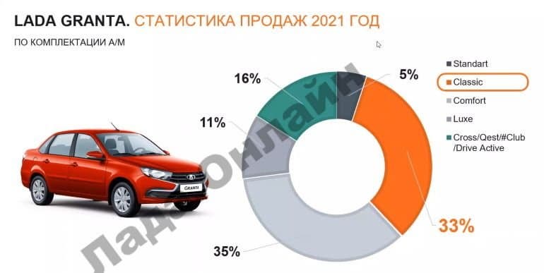 В прошлом году в России было продано 350 714 новых автомобилей марки Lada, включая 111 430 единиц Lada Granta. То есть каждый третий новый автомобиль компании — это Granta.