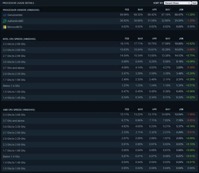 Где же AMD? Лучшая из остальных – на 33 месте рейтинга. Пользователи Steam давно предпочитают Nvidia AMD, и сейчас ситуация никак не изменилась.