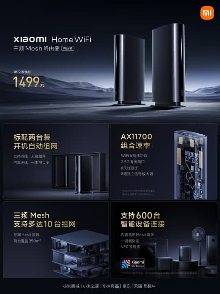 Сегодня Xiaomi официально представила трёхдиапазонный Mesh-маршрутизатор Xiaomi Home WiFi, который предлагается за 225 долларов.