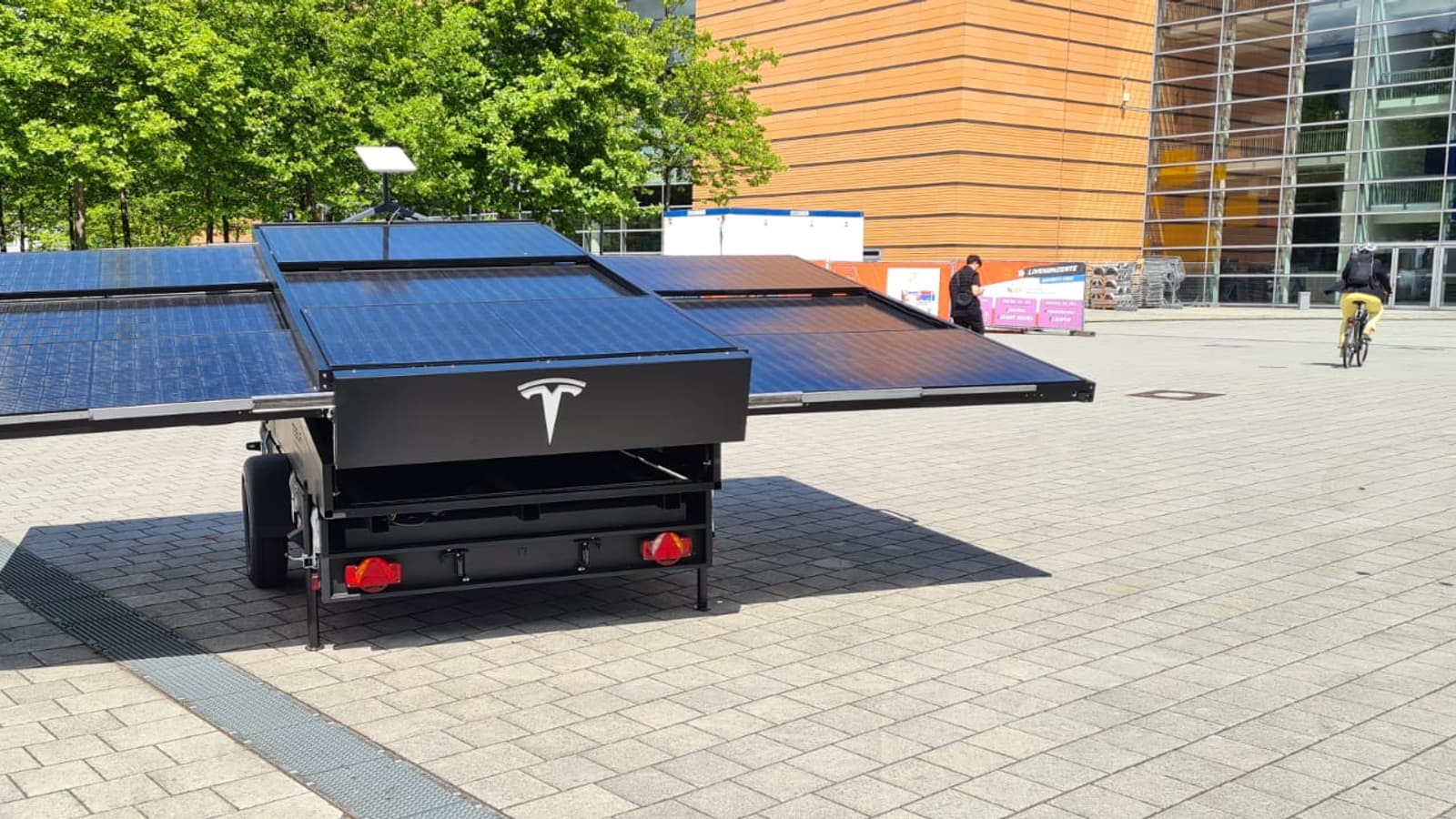 Tesla представила прицеп с раскладываемыми солнечными панелями и спутниковой системой SpaceX Starlink на выставке IdeenExpo в Германии.