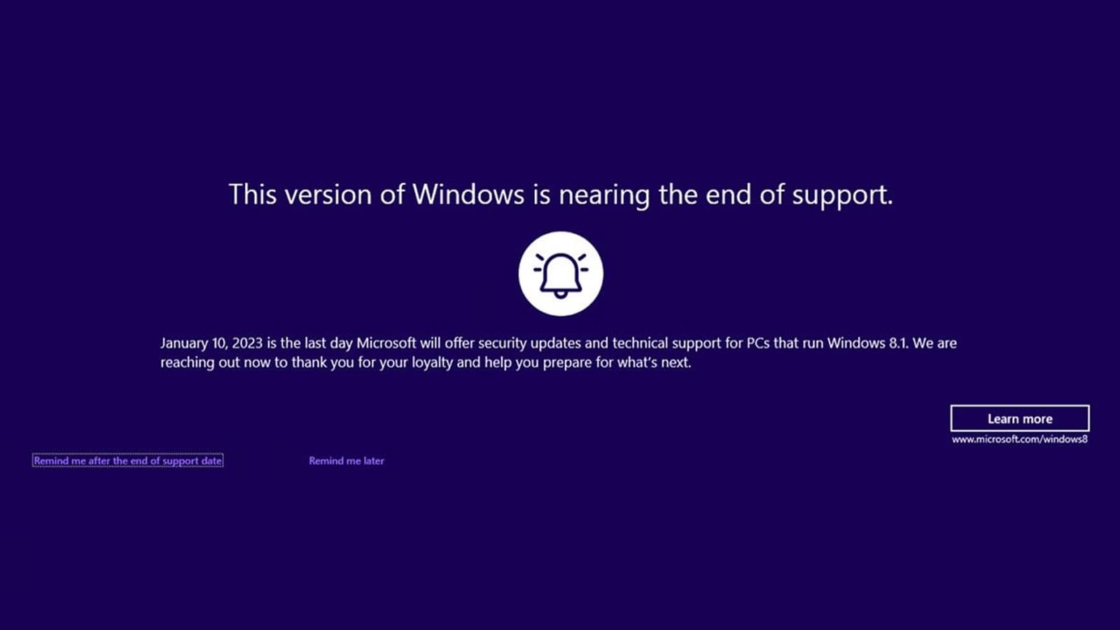 Компания Microsoft готовится к прекращению поддержки операционной системы Windows 8.1. Хотя это произойдёт только 10 января 2023 года, до этого момента система будет выдавать сообщения о скором прекращении выпуска обновлений и станет предлагать переход на более новую ОС.