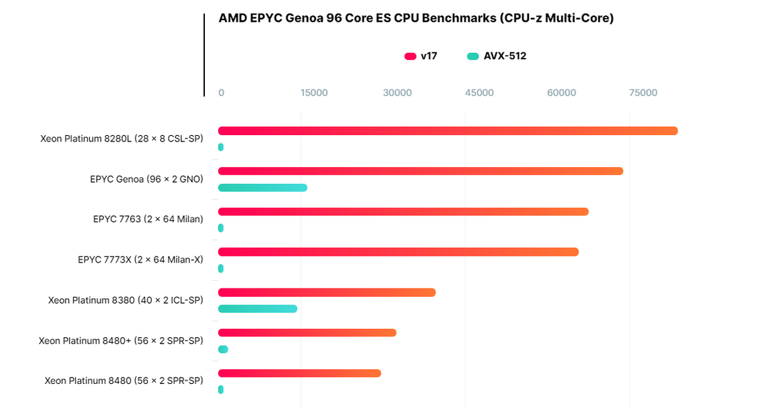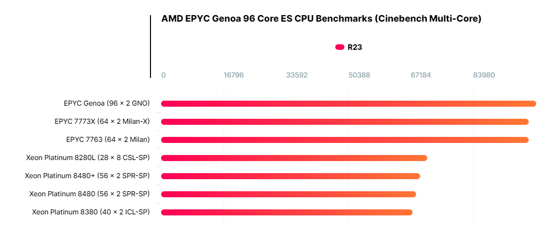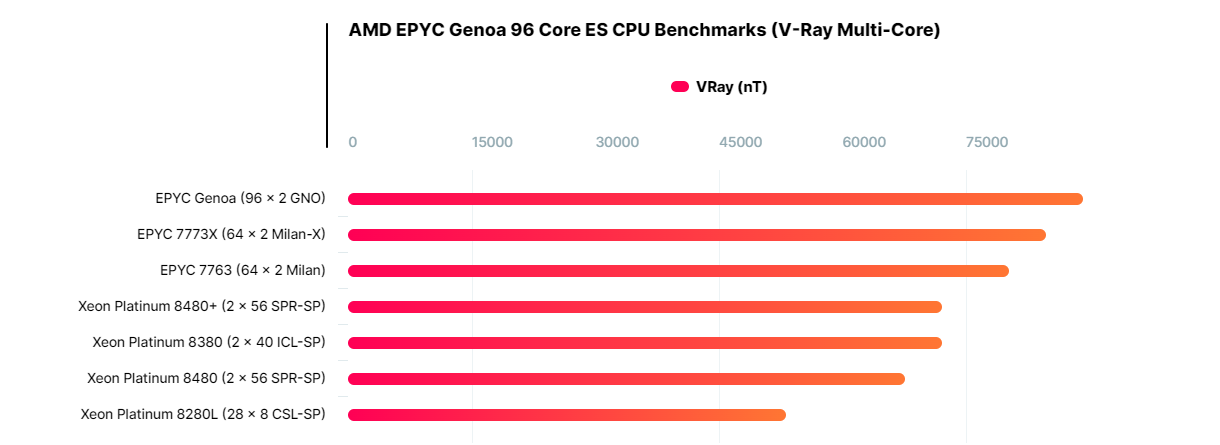 Предположительно, тесты прошёл Epyc 9654P с 96 ядрами и частотами 2,15–3,7 ГГц. У него 384 МБ кеш-памяти третьего уровня и TDP 360 Вт. Также стоит уточнить, что тесты проходила система с двумя такими CPU.