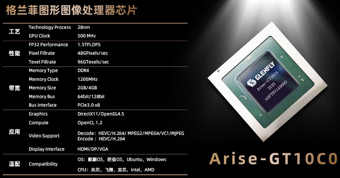 Китайский производитель графических процессоров Glenfly Tech Co., Ltd. опубликовал официальную страницу нового с описанием функций и спецификаций видеокарты Glenfly Arise GT-10C0. Согласно этой информации, карта стала первой, которая использует графический процессор, разработанный в Glenfly.