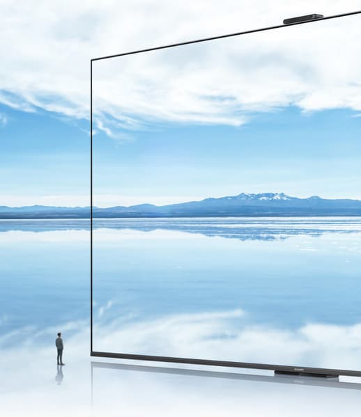 Первый официальный постер подтверждает, что телевизор получит антибликовое покрытие AG и крошечную рамку с трёх сторон. На верхней части по центру будет установлена камера с микрофонами для распознавания пользователя, видеозвонков и управления контентом.
