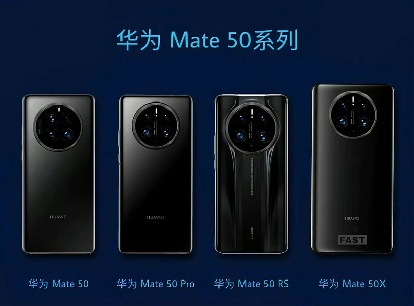 В китайских социальных сетях распространилось изображение, на котором показаны все четыре смартфона линейки Huawei Mate 50. Ранее сообщалось, что линейка будет включать модели Huwei Mate 50, Mate 50 Pro, Mate 50 RS и Mate 50X.
