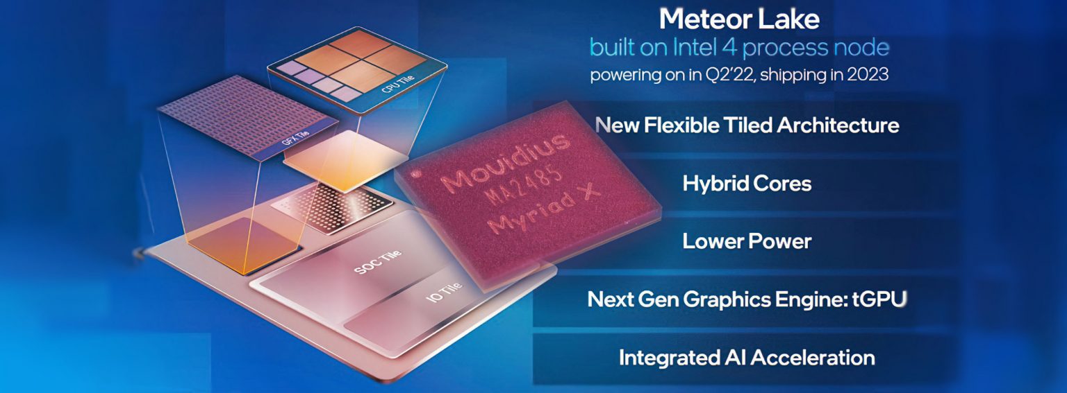 Напомним, Meteor Lake перейдут на новые микроархитектуры для больших и малых ядер, получат новый GPU, перейдут на техпроцесс 7 нм (Intel 4) и на трёхмерную компоновку на основе плиток.