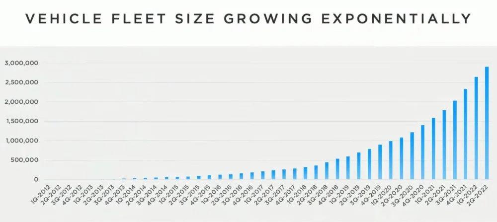 Маск также пошутил, что рост автопарка Tesla происходит настолько плавно, что выглядит как одна из тех диаграмм бизнес-планов, которые созданы для того, чтобы произвести впечатление на потенциальных инвесторов.