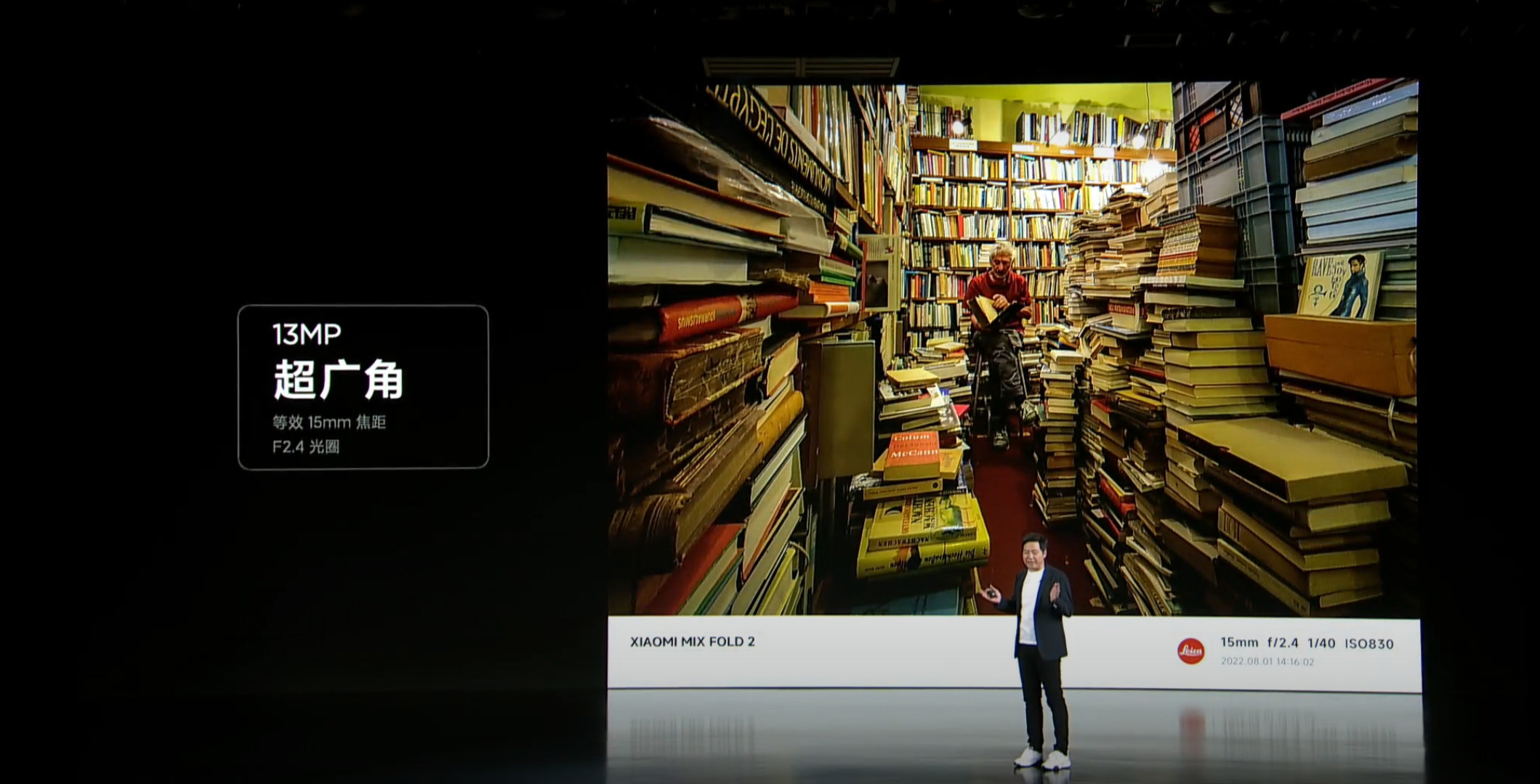 Основная камера Mix Fold 2 создана в сотрудничестве с Lecia. Она представлена тремя модулями. В основном применяется 50-мегапиксельный сенсор Sony IMX766, широкоугольный объектив и система оптической стабилизации. Также есть модуль с 13-мегапиксельным сенсором и сверхширокоугольным объективом с ЭФР 15 мм и модуль с 8-мегапиксельным сенсором и телеобъективом. Фронтальная камера – 20-мегапиксельная.