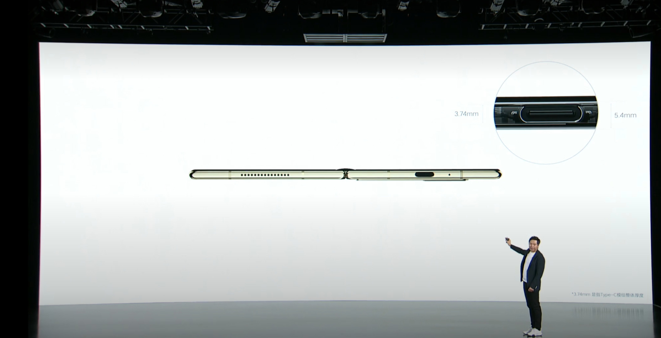 В новинке акцент сделан на компактности: Mix Fold 2 получил совершенно новые петли, которые позволили значительно уменьшить толщину устройства. В итоге Mix Fold 2 в разложенном состоянии всего чуть толще обычного порта USB-C. Толщина в разложенном состоянии – 5,4 мм, в сложенном – всего 11,4 мм. Масса смартфона – 262 грамма.
