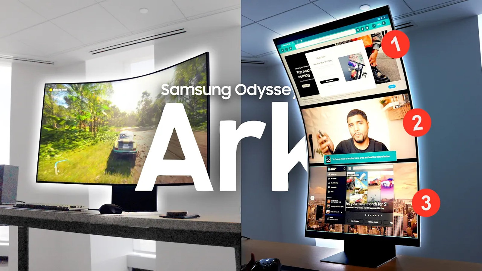 Odyssey Ark позиционируется производителем как первый в мире 55-дюймовый изогнутый дисплей с разрешением 4K и частотой обновления изображения 165 Гц. Радиус изгиба составляет 1000R, время отклика — 1 мс.