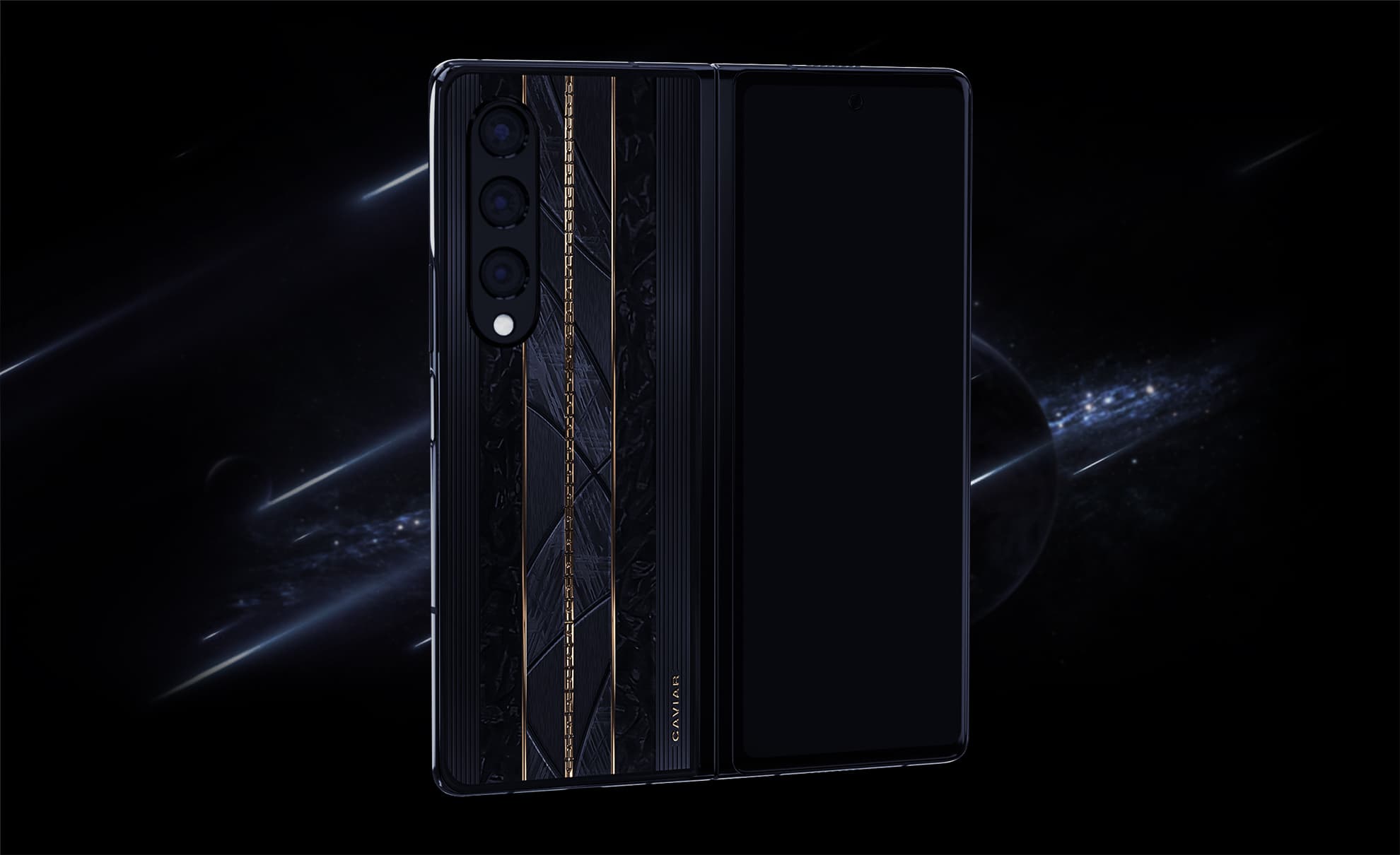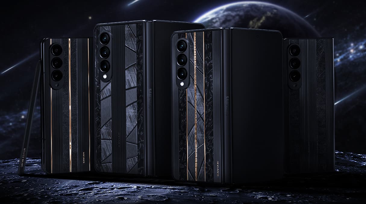 У модели Golden Meteor в отделке используются золото и вставки из метеорита. Здесь также используются фрагменты Сеймчан, Муонионалуста и Каньон Дьябло. В отделке Samsung Z Fold 4 Black Rain используются титан и телячья кожа, а в Solar Eclipse — титан и золото.