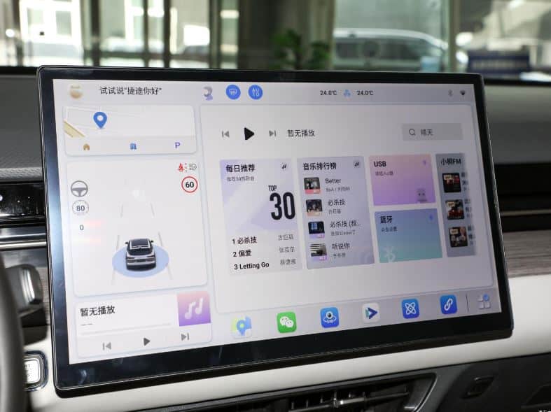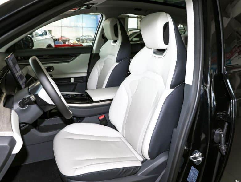 Внутри – минималистский интерьер, как у Tesla. В центре передней панели закреплен сенсорный экран с диагональю 15,6 дюйма. В мультимедийно-развлекательной системе используется SoC Sanapdragon третьего поколения (обычно используется Snapdragon 8155), цифровая приборная панель – с 8-дюймовым экраном. При этом есть еще и проекционный дисплей, и голосовой помощник, и автопилот уровня L2+ (с адаптивным круиз-контролем). В общем, для своей цены автомобиль оснащен очень хорошо. Есть еще большая панорамная крыша, порты USB для зарядки гаджетов в передней и задней частях салона, аудиосистема с громкоговорителями в подголовниках.