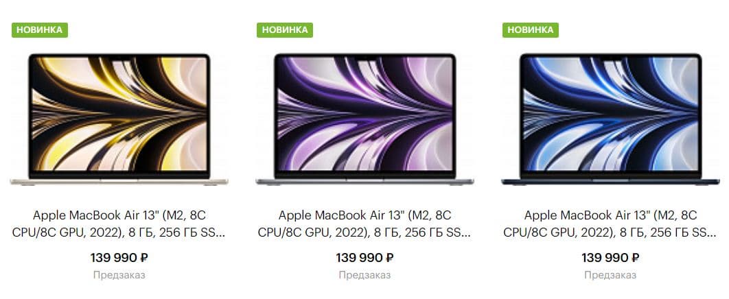 В фирменных интернет-магазинах Apple в Германии и во Франции стоимость аналогичного MacBook Air — чуть менее 1,5 тыс. евро. В re:Store цены на гаджеты выше, чем по рынку, поскольку сеть позиционирует себя как премиум-ретейлер. В небольших торговых точках, которые уже завезли ноутбуки на М2 по «серым» схемам, они в среднем стоят 108 – 120 тыс. Следует полагать, что и в «Систилинке», и в «М.Видео – Эльдорадо» стоимость новинка будет примерно на уровне цены в re:Store.