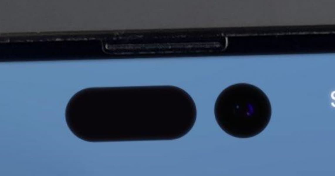 Также показаны два выреза в экране iPhone 14 Pro. И это уже реальный смартфон со включённым экраном.