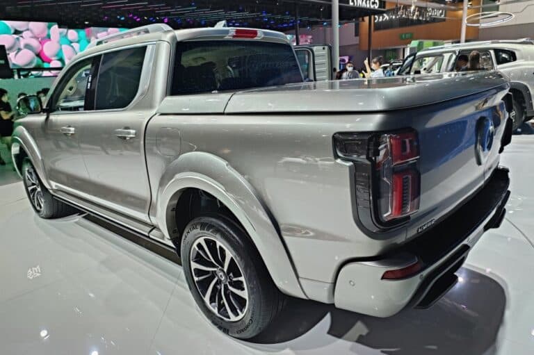 Пикап построили на общей с «Танком» рамной платформе с неразрезным задним мостом и пружинной задней подвеской и оснастили тоже одинаково. Под капотом установлен 3-литровый турбированный двигатель V6 с двумя турбинами мощностью 354 л.с. с 500 Нм крутящего момента, в связке с которым работает 48-вольтовый стартер-генератор, 9-ступенчатый «автомат» и полный привод с электромагнитной муфтой BorgWarner.