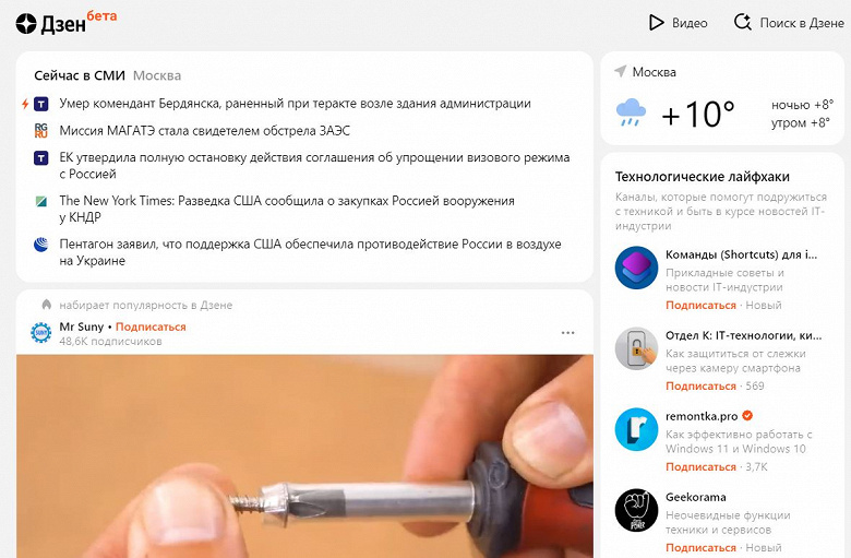 Пресс-служба VK сообщила о том, что портал dzen.ru заработал в тестовом режиме, на нём представлен контент авторов «Дзена», поисковая строка Яндекса, новости и погода.