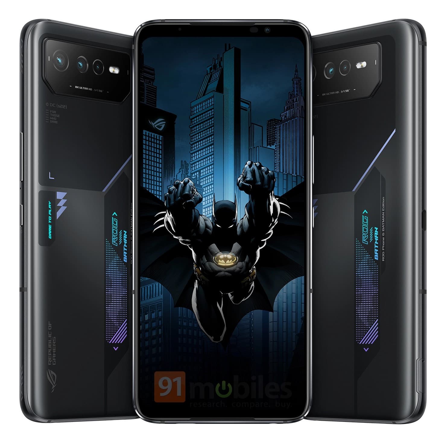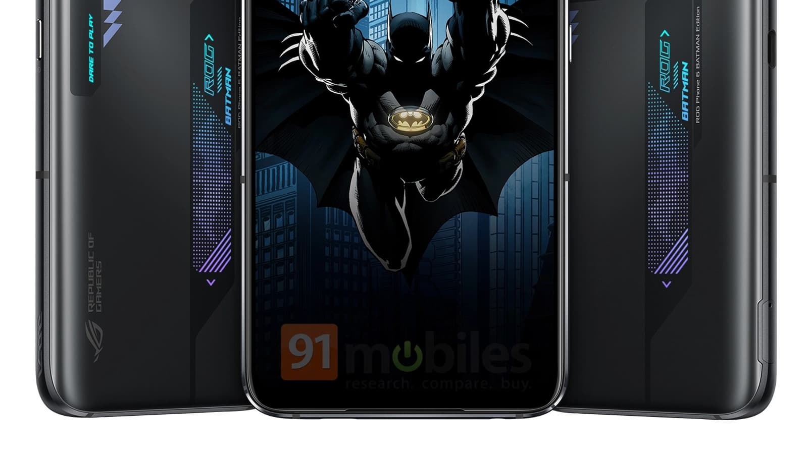 На изображении выше запечатлён игровой смартфон ROG Phone 6 Batman Edition, посвящённый известному персонажу комиксов DC и не только.
