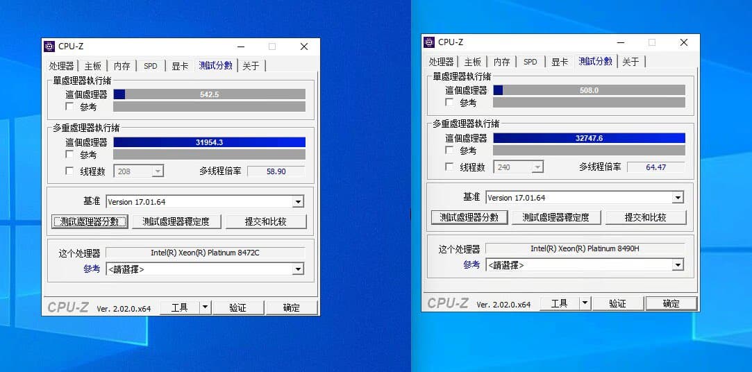 В бенчмарке CPU-Z процессоры близки. 52-ядерный быстрее в однопоточном режиме благодаря частоте, а 60-ядерный выигрывает в многопоточном из-за большего числа ядер.