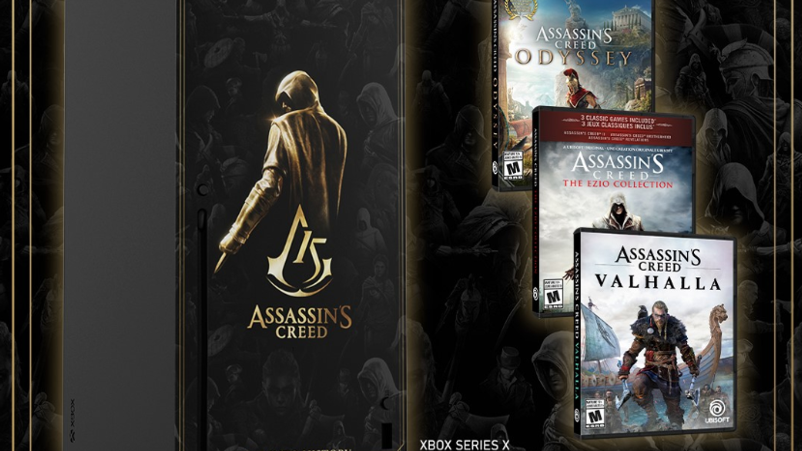 В комплекте представлены Assassin’s Creed: Valhalla, Assassin’s Creed: Odyssey и Assassin’s Creed: The Ezio Collection.