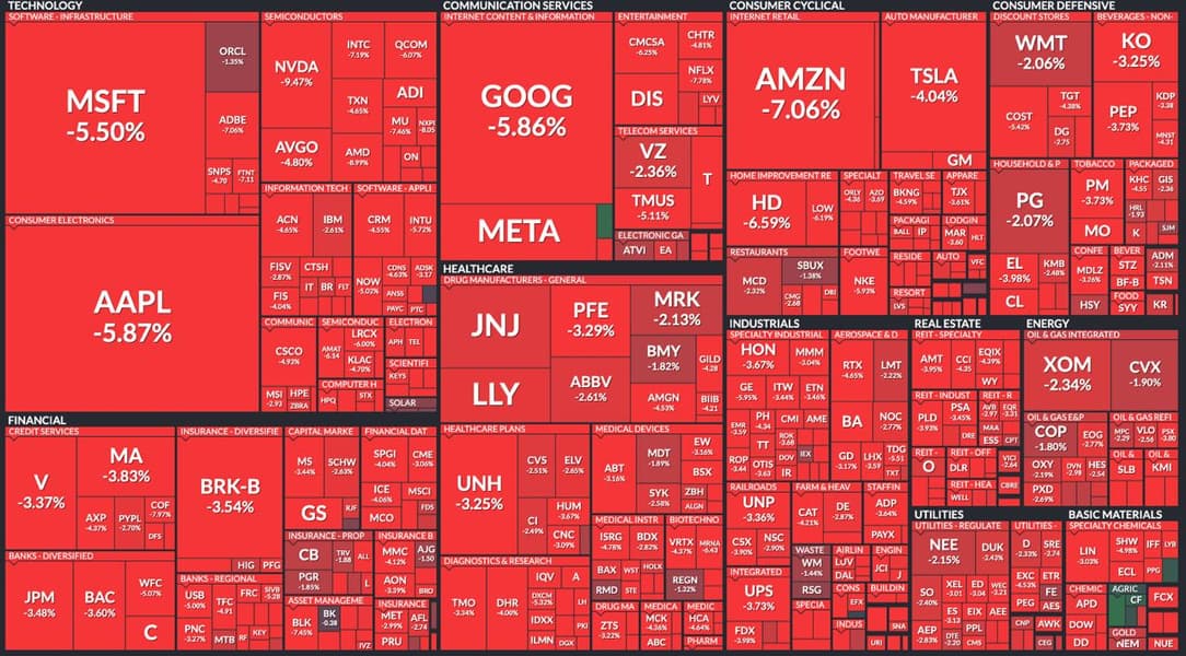 Акции Apple снизились на 5,87%, Tesla подешевела на 4,04%, Amazon стала дешевле на 7,06%, Google потеряла в цене 5,86%, акции Microsoft подешевели на 5,5%. Суммарная рыночная стоимость акций этих компаний уменьшилась на 500 миллиардов долларов.