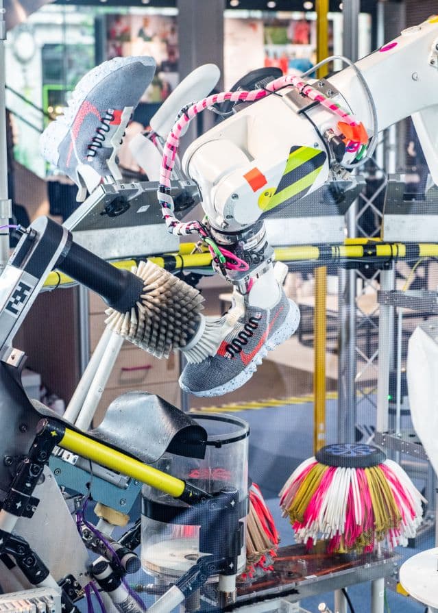 Компания Nike создала робота, который умеет чистить и ремонтировать кроссовки. Модель носит название BILL (Bot Initiated Longevity Lab) и ее цель, по словам создателей, продлить срок службы кроссовок и, в результате, уменьшить воздействие на окружающую среду. На данный момент BILL может чистить и ремонтировать кроссовки Nike Air Force 1, Air Jordan 1, Space Hippie 01 и Nike Dunks.