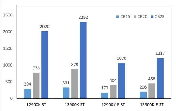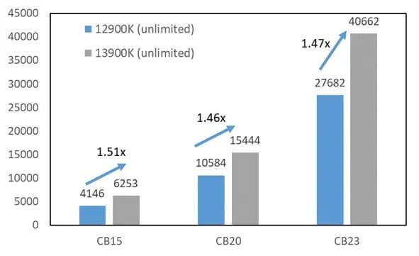 Напомним, Core i9-13900K имеет восемь больших ядер и 16 малых. При этом малые остались на старой архитектуре, а большие перешли на обновлённую Raptor Cove. Кроме того, новый CPU работает на ощутимо более высоких частотах, чем старый.