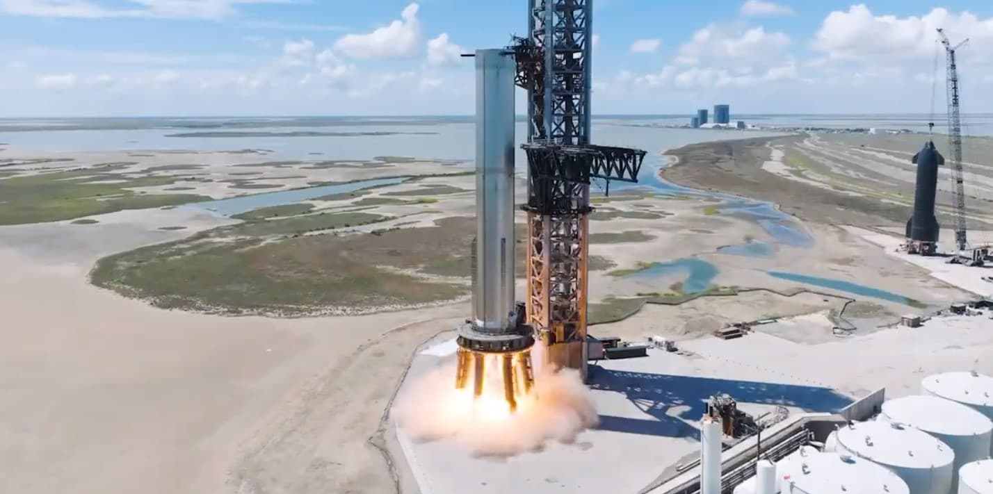 В этот раз тестировался одновременный запуск шести двигателей, установленных на Super Heavy. Как показано в видеоролике, испытания прошли успешно.