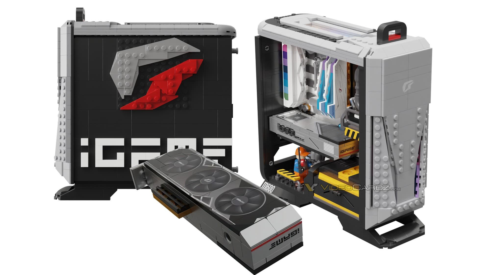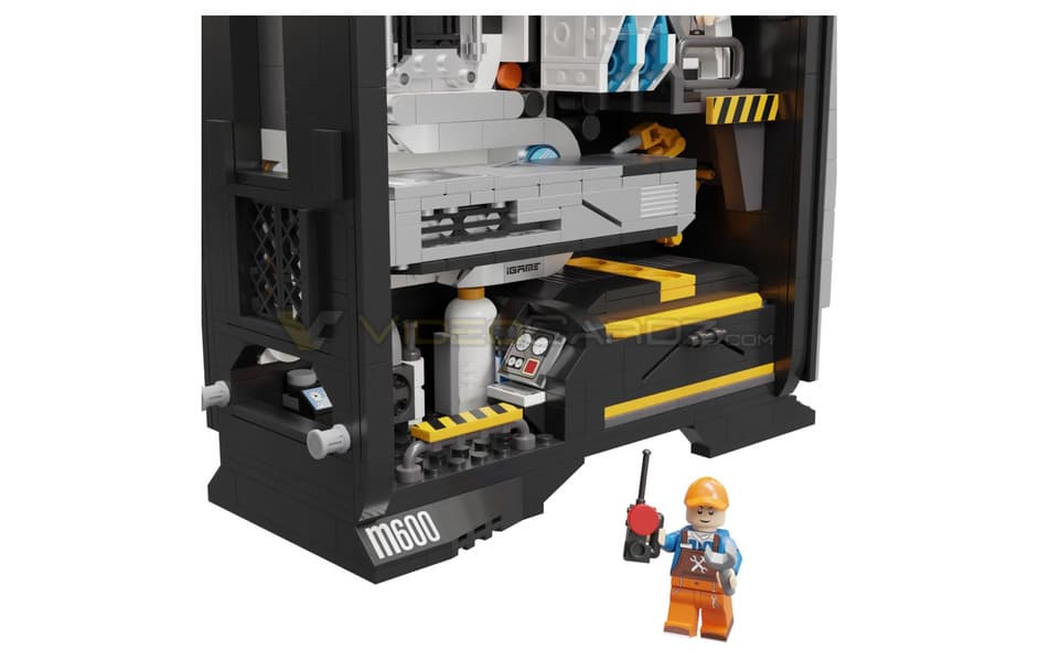 Новинка состоит из 1123 деталей, а все нужные компоненты, включая «материнскую плату Colorful iGame UltraD5 Z690» и «оперативную память iGame Vulcan DDR4» нужно собирать из пластиковых кубиков. В комплекте даже идут две фигурки инженеров.