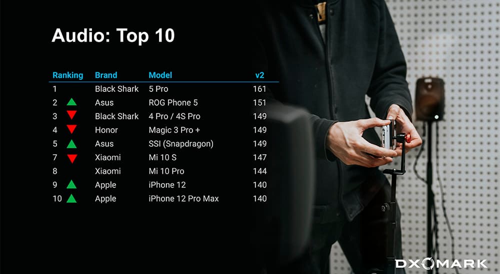 Аудиорейтинг тоже пересмотрен, и в нем тоже телефоны Apple поднимаются вверх, а Xiaomi Mi 10S опускается вниз.