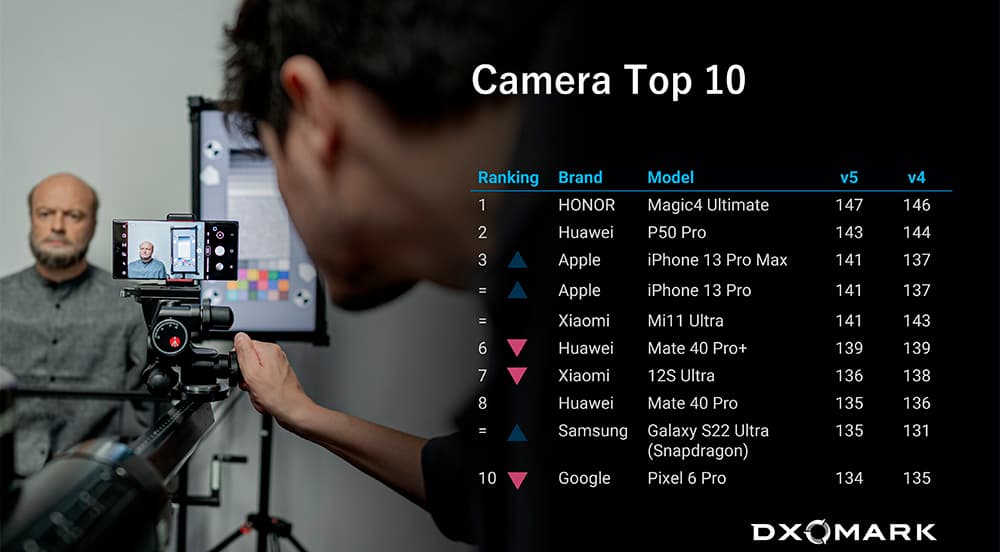 Само собой, вместе с методологией пересмотрен и сам рейтинг, в топ-10 произошли интересные перестановки. Так, iPhone 13 Pro Max вошел в топ-3 лучших камерофонов мира – у него теперь 141 балл вместо 137 ранее. Лучший камерофон мира, Honor Magic4 Ultra, сохранил лидерство, упрочив его на один балл.