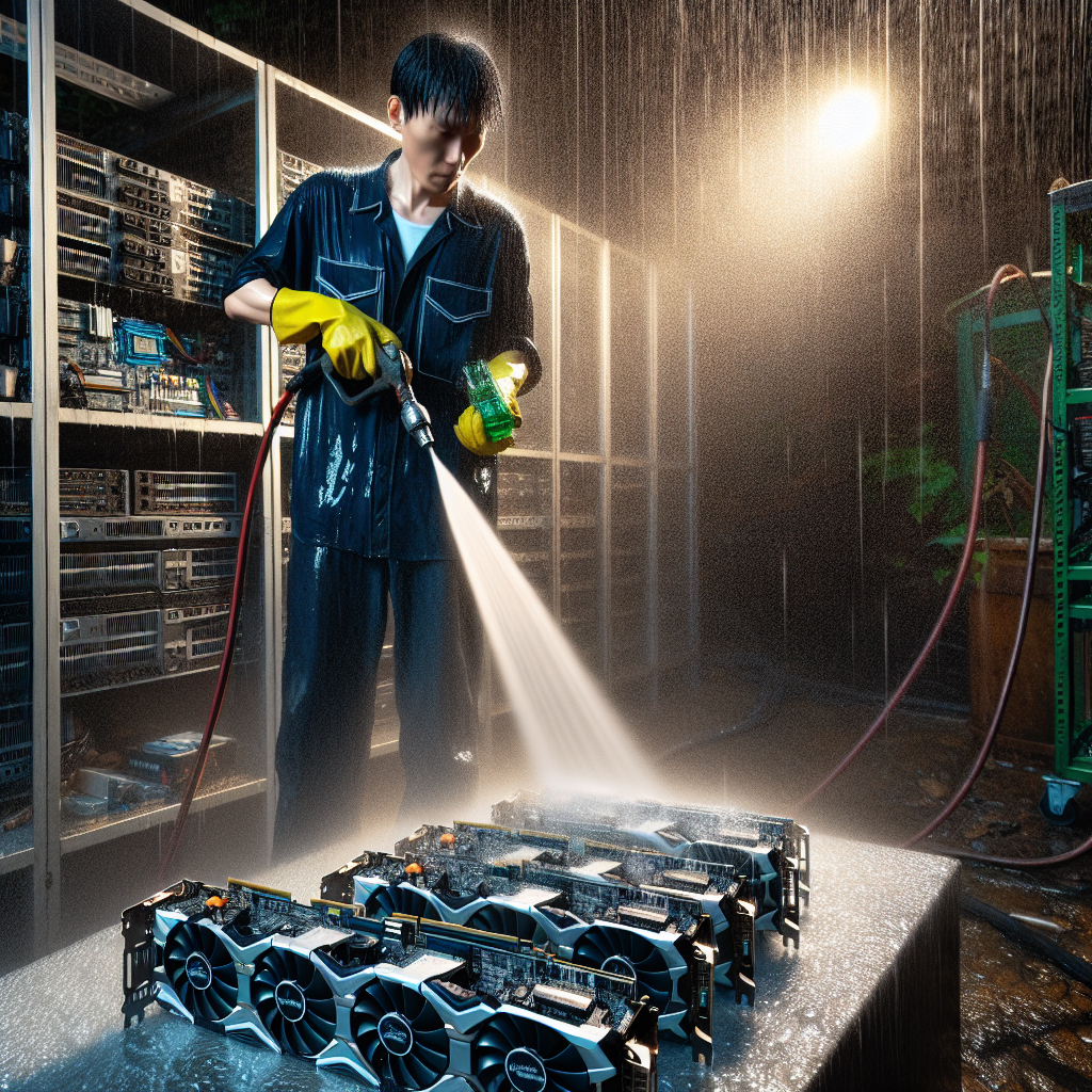 Видео может вызвать шок у тех, кто покупал в прошлом году видеокарты за 100 или 200 тысяч рублей, но сейчас цена (особенно на вторичном рынке) снизилась в разы, и, видимо, майнер решил, что кропотливая обработка каждого 3D-ускорителя отнимает слишком много времени и сил, которые при перепродаже сейчас, вероятно, не будут компенсированы. Поэтому видеокарты приводятся в состояние «не бит, не крашен» быстро и эффективно – при помощи мойки высокого давления.