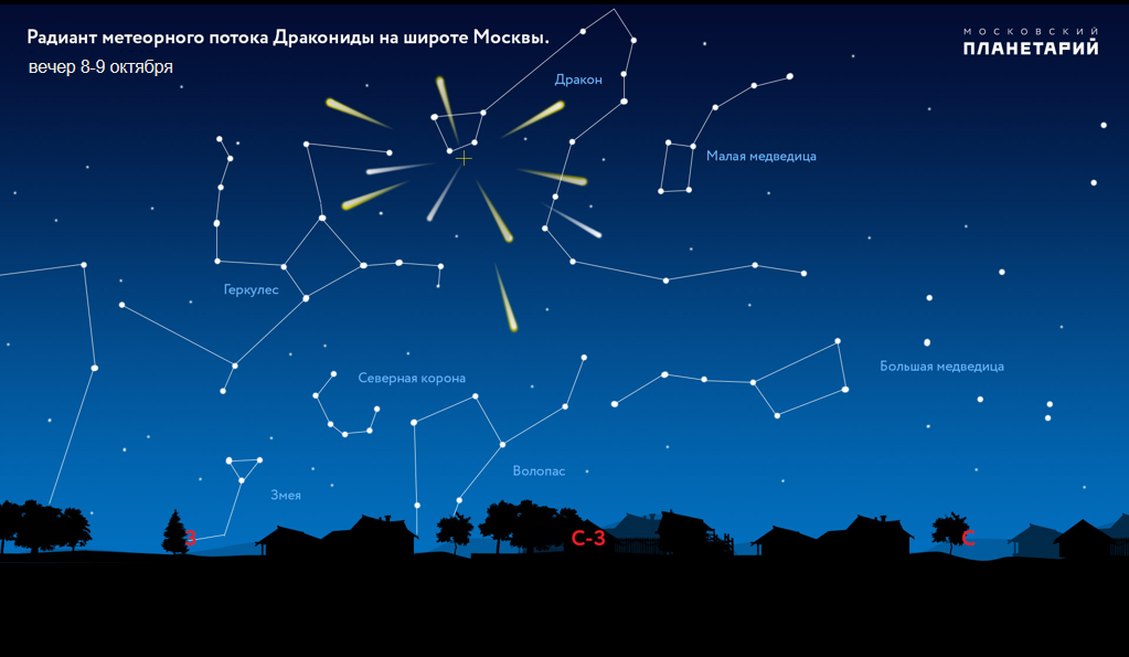 Два метеорных «дождя» достигнут максимума своего действия в начале и конце октября. Первый из них — Дракониды. Максимальная активность приходится на 8 октября.