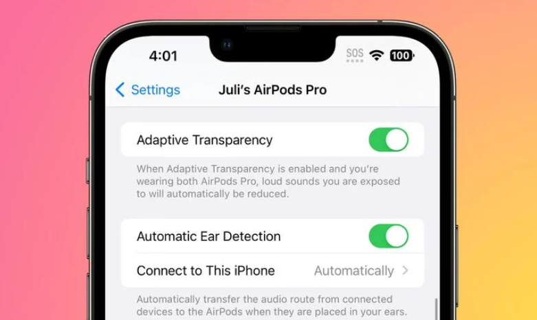 Как видно на скриншоте, пользователи оригинальных AirPods Pro, обновившие до бета-версии прошивки AirPods 5A304A, теперь могут видеть параметр «Режим адаптивной прозрачности» в разделе настроек AirPods Pro.