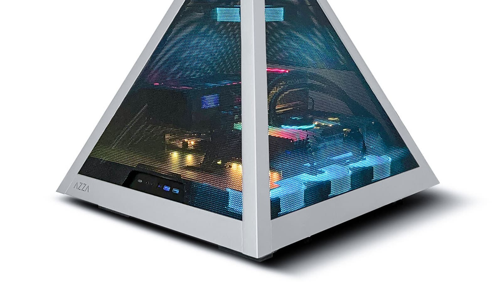 Компания Azza выпустила корпус Pyramid 804M Mesh пирамидальной формы с тонкими боковыми панелями из стальной сетки с трёх сторон.