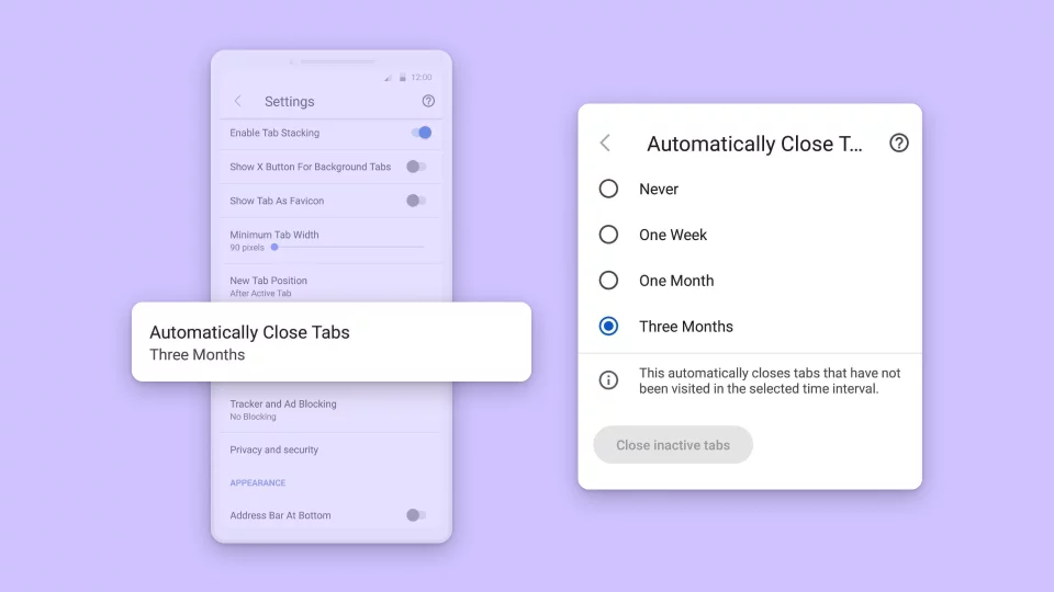Также появилась функция автоматического закрытия неактивных вкладок. Пользователь может указать в настройках, через какой период времени можно выгрузить неактивные вкладки. Ещё появилась специальная кнопка для закрытия всех вкладок, неактивных на момент нажатия.