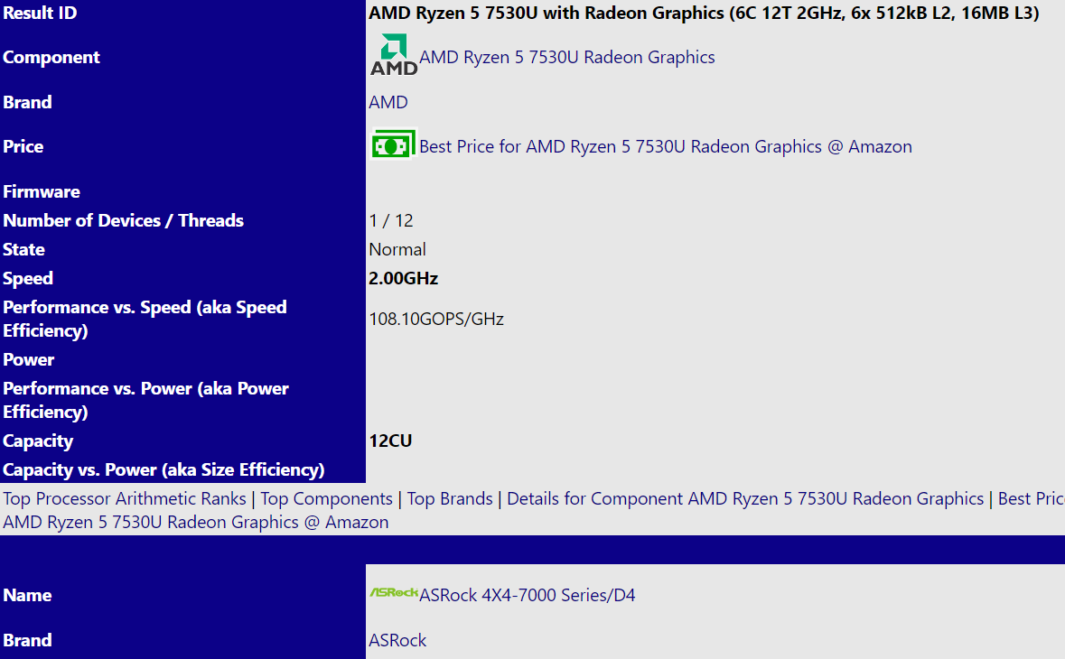 На это указывает Ryzen 5 7530U, который засветился в Сети. Благодаря новому принципу именования процессоров AMD, одного названия достаточно, чтобы понять, что это APU на архитектуре Zen 3 или Zen 3+. Из остального нам пока известно лишь то, что это шестиядерный процессор, оснащённый также GPU с 12 блоками CU, то есть с 768 потоковыми процессорами. К слову, это говорит в пользу архитектуры Zen 3+, потому как такой iGPU есть именно у Ryzen 6000U.