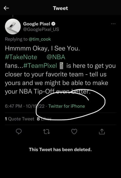 Как заметили пользователи, сообщение в Twitter, оставленное официальной учётной записью Google Pixel, было опубликовано с iPhone.