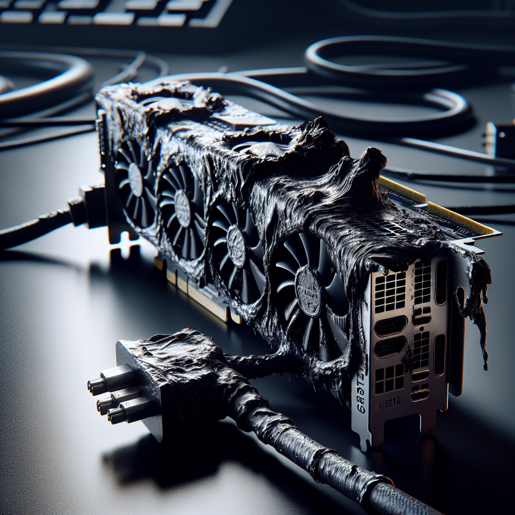 Как видно на фото, разъём, размещённый на плате, практически расплавился. То же самое касается и кабеля-переходника с четырёх 8-контактных разъёмов на один 16-контактный (он входит в комплект поставки видеокарты). Пользователь говорит, что кабель загорелся и расплавился, когда он играл в Red Dead Redemption 2.